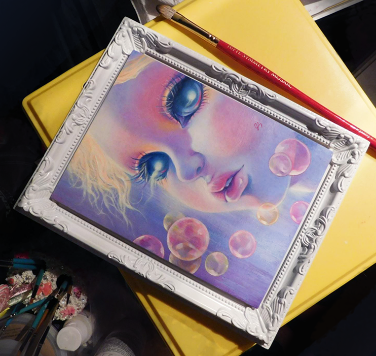 Bubbly is a special project. Unlike all my other works, I didn't thin the water soluble oil paint with water, but with Acrylic Glazing Medium! That made Bubbly a new challenge, which was fun! She's a luminous 6x8 oil painting. [I'm sold!]