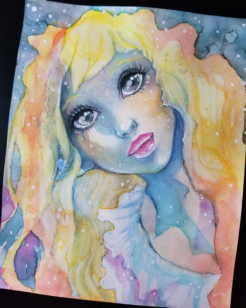 Confection is a 5x7 of a sugar-dusted fairy who can tip... either way. Great company during a tea party, and a terror if spotted skipping through the dead of night. There is such a thing as too sweet.