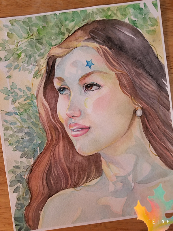 This little witch is wearing a fairy star on her brow, walking through the woodlands. What is she up to? I wonder! - Schmincke watercolor on Strathmore paper (8x10)