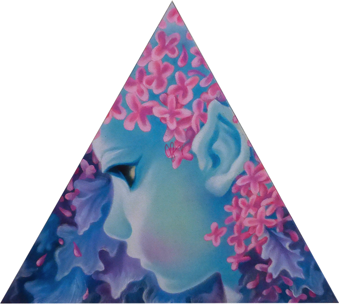 My fairy, Petal, is finally done! She's a frost fairy, of the sort that appears in the early spring. She's an oil painting on an 8x8x8 Trekell triangular wood panel. A little quirky!