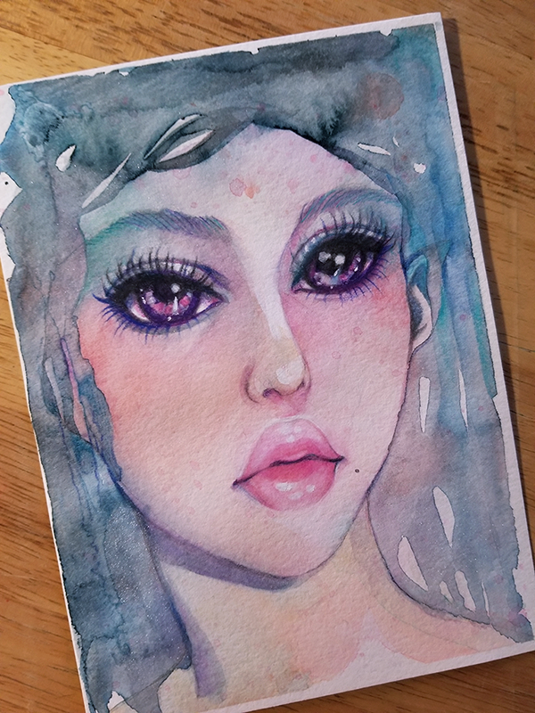 A 5x7 Schmincke watercolour on Strathmore paper, called 'If I know you, I know what you'll do', of the grave and beautiful face of a mermaid whose home is truly at our mercy. Done for Mermay.