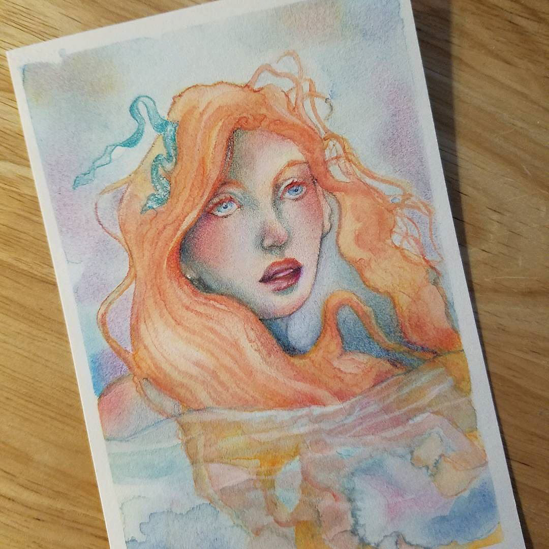 This little mixed-media is called 'Save part of her world', and is of a mermaid staring anxiously at the surface of the ocean.