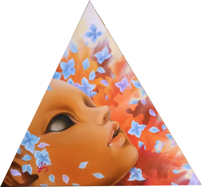 This is fairy Puck. He's a mate to fairy Petals, and, like her, he's an oil painting on an 8x8x8 Trekell triangular wood panel! Watch out for mischief with this one!