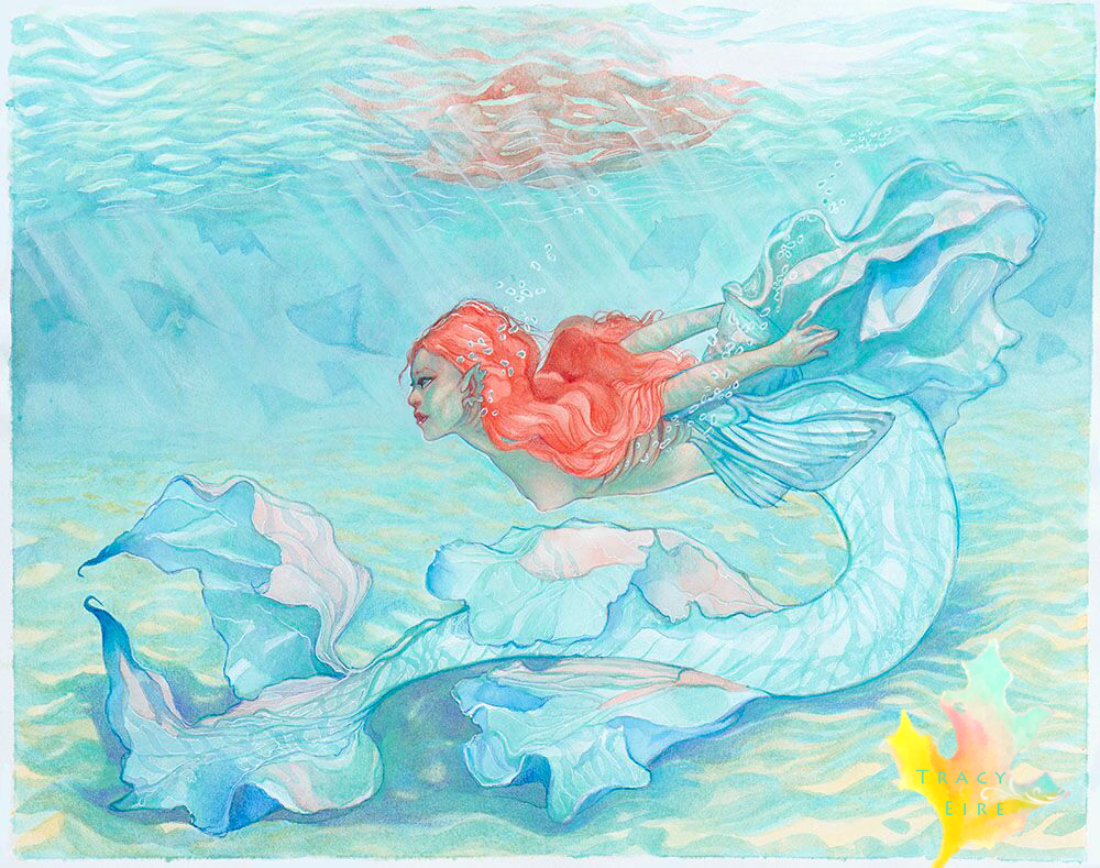 This watercolour is called 'The Shape of her Water'. Firstly, about 55% of us is water, and, secondly, it's important to remember that many of the first sea creatures in imagination had more in common with us than not.